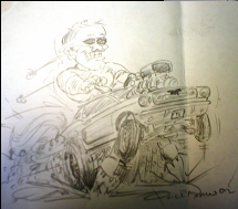 Ever since I was old enough to hold a crayon I've been drawing. My first love was copying Rat Fink cartoons and any Hot Rod Cartoon. I even did a stint as an amature cartoonist for a while in the 80's but nearly starved to death. So I started incorporating them into signs and my other work. Years ago I used to sit in restaurants and draw cartoons for freinds and people passing by and still do on occasion. I've done illustration, logo design, t-shirt designs, layouts for signs, portraits, and so on. You name it I've managed to scratch something on about every kind of suface there is out there. I have painted and drawn on everything from Hot Wheels to tractor trailers to complete wall graphics. Over time I have gotten to where I can pretty much draw a design out while I'm talking with a customer. One of my old bosses actually tagged me with the "QuickDraw"handle. I like drawing because it is the purest form of expression I can think of. On my scetchpad page I have shared some sketches along with the finished product. Now, I know everybody is into computer renderings and that's cool. But, I grew up 'old schooling' it and alot of times when you needed to make a sale and land the job, it was my pencil that saved me from going hungry many times. Plus, my pencill never needs charging. Thanks for your interest, Jay.